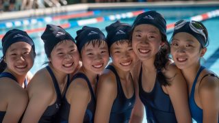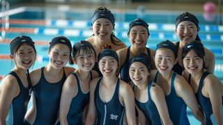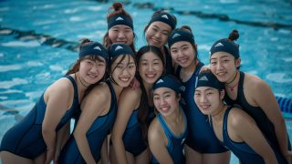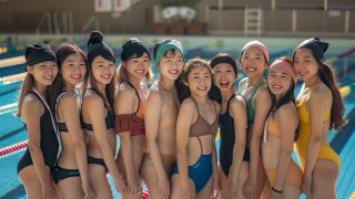 ai画像 群馬県 女子水泳部 集合写真 #部活 #水泳部 #競泳水着 #AI美少女