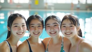 ai画像 山形県 女子水泳部 集合写真 #部活 #水泳部 #競泳水着 #AI美少女